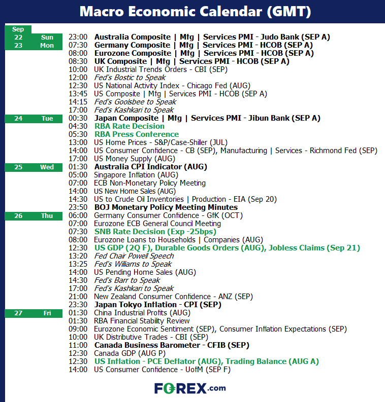 If Friday’s the climax for USD data with the monthly PCE inflation report, Monday’s flash PMIs and Thursday’s GDP are the warm-up acts. PCE inflation is not a particularly volatile release, but it also means it takes less of a deviation from expectations to spark a move. And if we see that US PMIs And GDP outperform expectations, even a 0.1% tick higher on core CPI or super core CPI could spark further short covering on the US dollar.