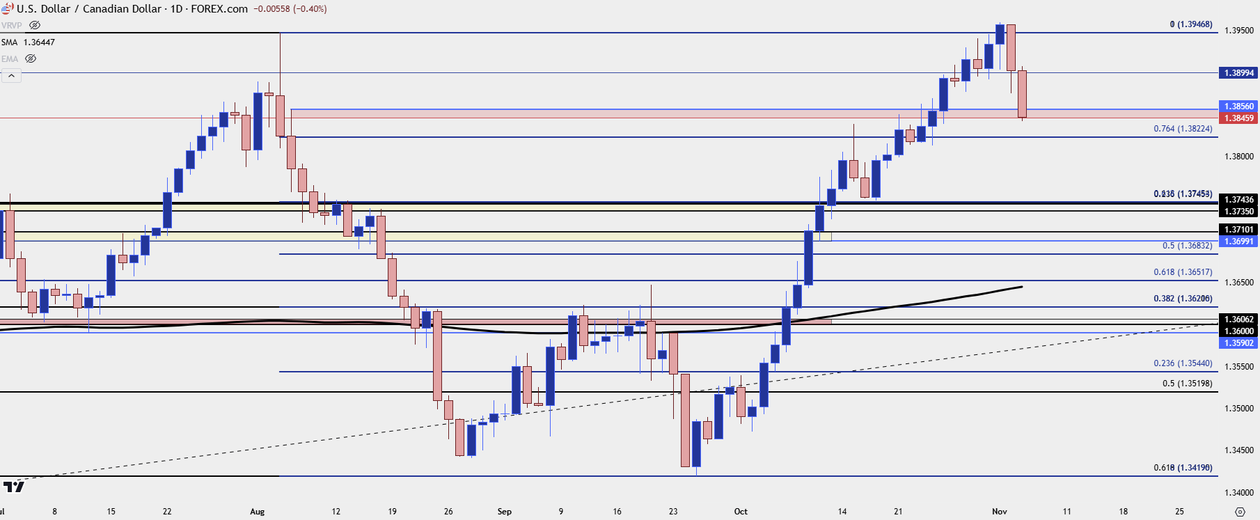 Chart prepared by James Stanley, USD/CAD on Tradingview