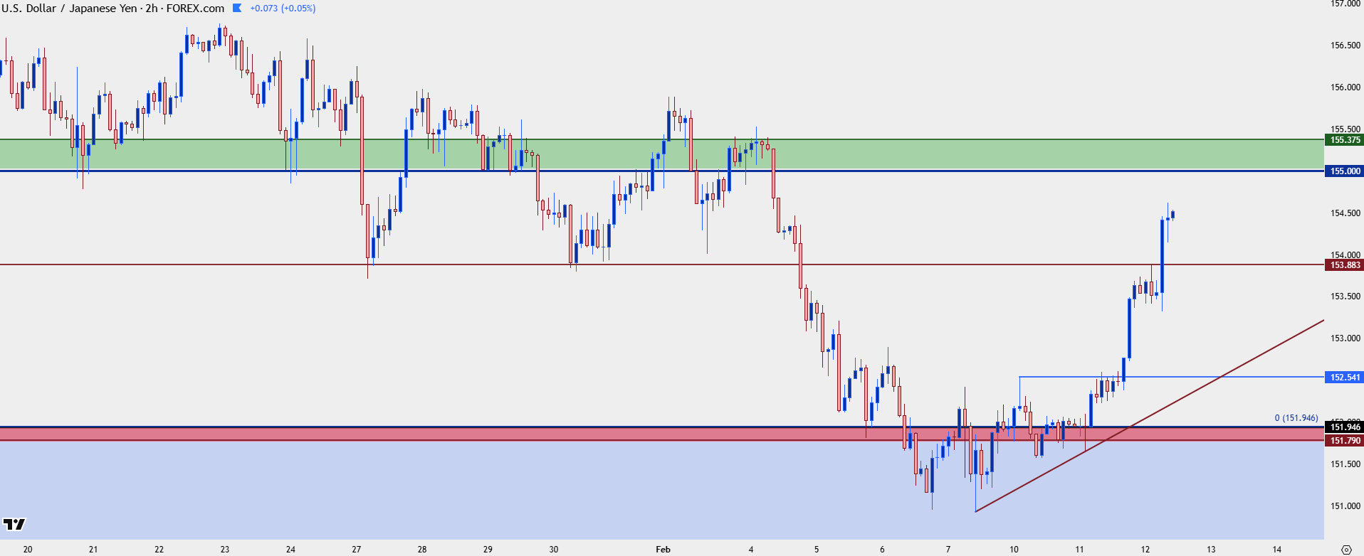 The 153.88 level from the article yesterday came in as resistance ahead of this morning’s CPI print, and it’s now support potential for bullish continuation setups in USD/JPY. And for next resistance, it’s the same 155-155.38 zone that I’ve been tracking.
