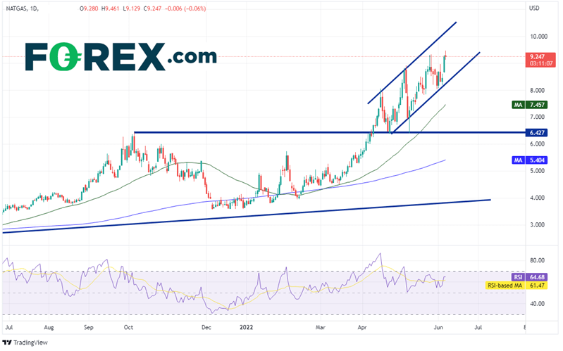 Demand for Natural Gas is high as countries seek alternatives for crude oil, especially in Europe where the EU has placed an embargo on Crude Oil from Russia. This has been pushing the price of Natural Gas higher. However, it’s not only in Europe where the demand is high. In the US, the weather is predicted to be hotter than usual in the south. This will also increase demand for the product. Not to mention that its driving season and overall demand for energy is high. In addition, China is reopening, which will further add to the demand of energy. As prices of oil and oil alternatives move higher, the price of Natural Gas will rise as well.