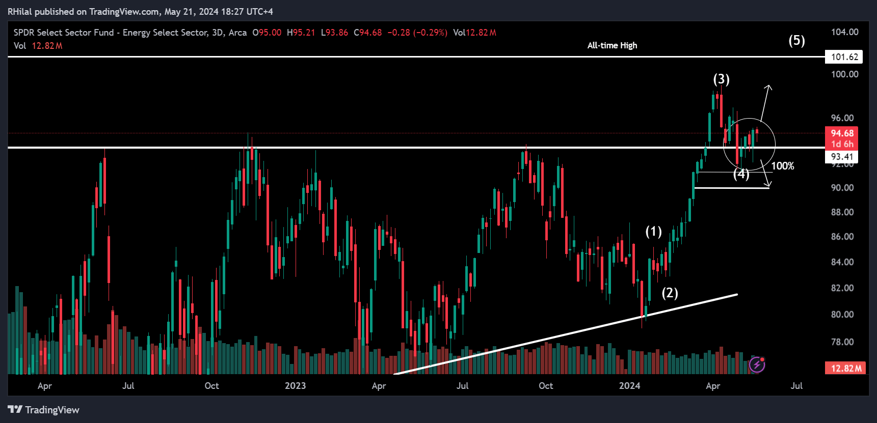 Crude Oil Analysis: XLE – 3-Day Time Frame – Logarithmic Scale