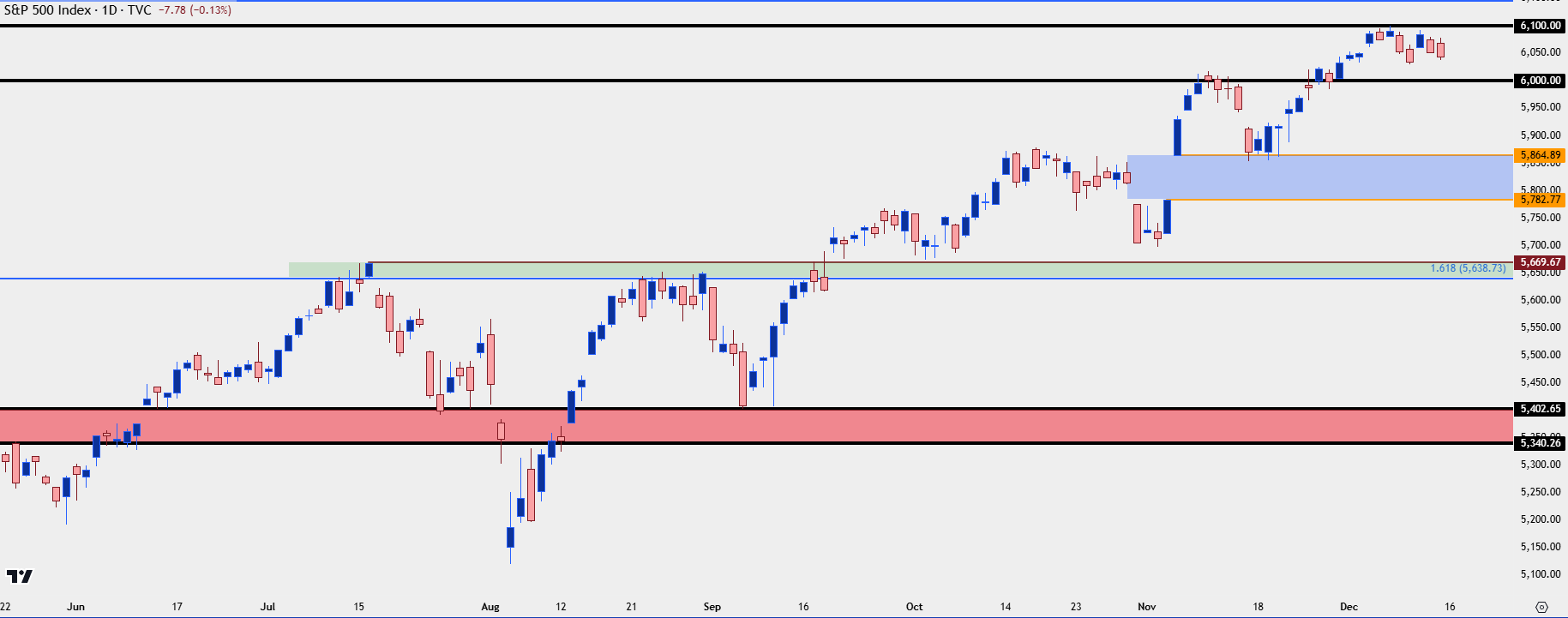 If we see a greater than 7% retracement, I’m going to assume that something has shifted in the fundamental backdrop. From where I sit as of this writing, I’m assuming it would be something to do with long-term US rates. And in that case, I’m looking to the zone from 5,340-5,400 and if buyers can hold the line there, similarly, there would be a case for upside potential following an approximate 11% pullback from current prices.